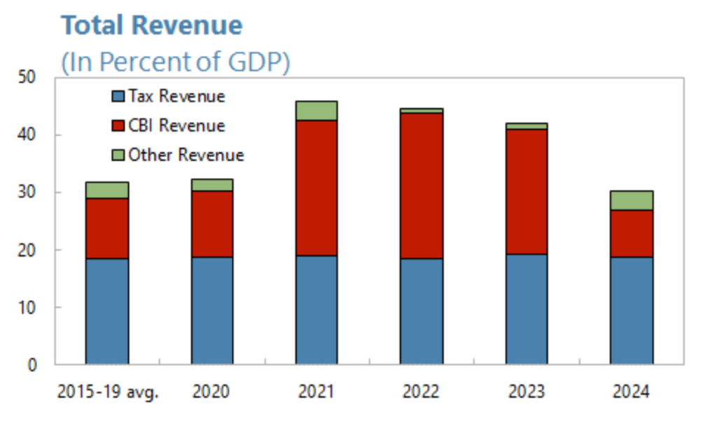 The Revenues from Citizenship program (about 50% of GDP) were spent on infrastructure projects, and social programs, schools, hurricane recovery, including civil servant salary increases, pension payments, and COVID-19 recovery. Funds are used for debt reduction, supporting the tourism/construction sectors,